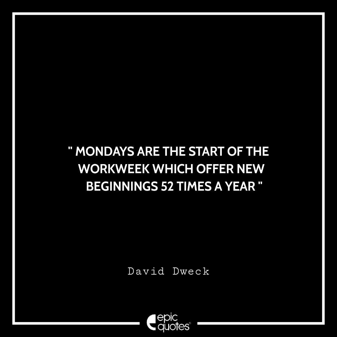 Mondays are the start of the workweek which offer new beginnings 52 times a year. –David Dweck Categories Monday " Mondays are the start of the workweek which offer new beginnings 52 times a year. –David Dweck " Post author By Shubham Post date March 31, 2022