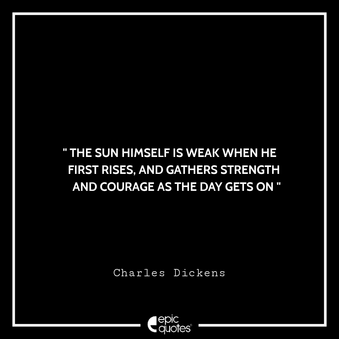 The sun himself is weak when he first rises, and gathers strength and courage as the day gets on. -Charles Dickens Categories Monday " The sun himself is weak when he first rises, and gathers strength and courage as the day gets on. -Charles Dickens " Post author By Shubham Post date March 31, 2022