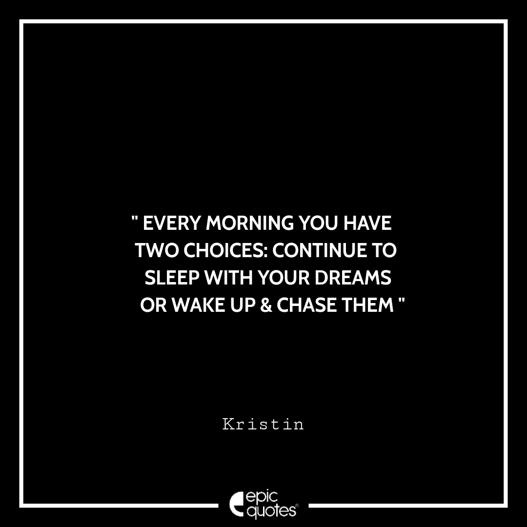 Every morning you have two choices: continue to sleep with your dreams or wake up & chase them. –Kristin Categories Monday " Every morning you have two choices: continue to sleep with your dreams or wake up & chase them. –Kristin " Post author By Shubham Post date March 31, 2022