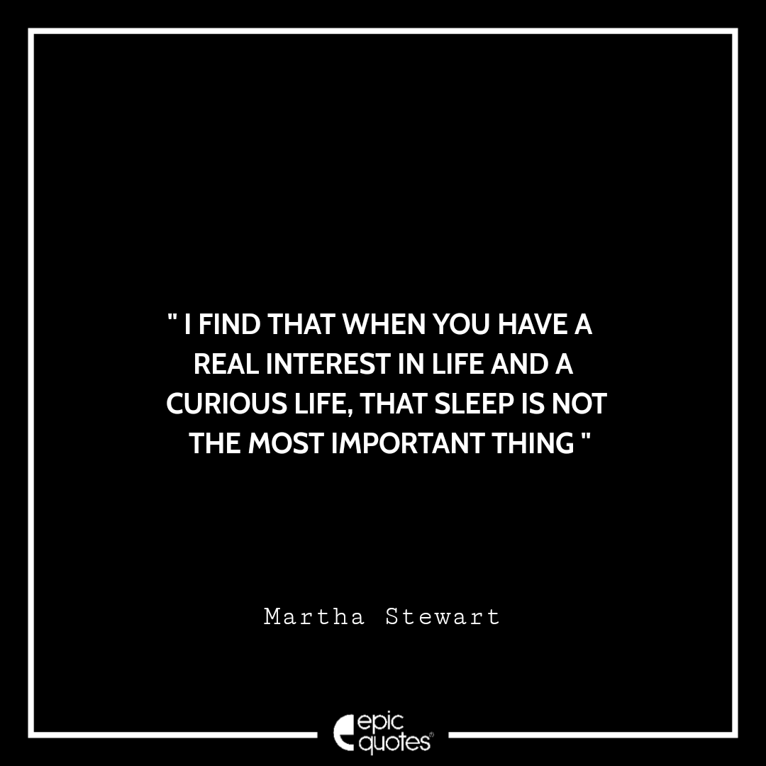 I find that when you have a real interest in life and a curious life, that sleep is not the most important thing. –Martha Stewart Categories Monday " I find that when you have a real interest in life and a curious life, that sleep is not the most important thing. –Martha Stewart " Post author By Shubham Post date April 1, 2022