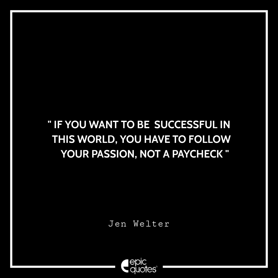 If you want to be successful in this world, you have to follow your passion, not a paycheck. -Jen Welter Categories Monday " If you want to be successful in this world, you have to follow your passion, not a paycheck. -Jen Welter " Post author By Shubham Post date April 1, 2022