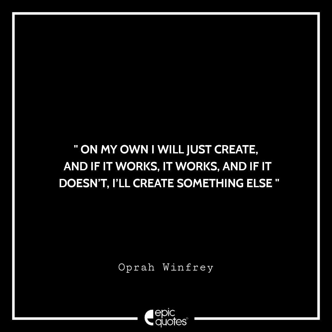 On my own I will just create, and if it works, it works, and if it doesn’t, I’ll create something else. -Oprah Winfrey Categories Monday " On my own I will just create, and if it works, it works, and if it doesn’t, I’ll create something else. -Oprah Winfrey " Post author By Shubham Post date April 1, 2022