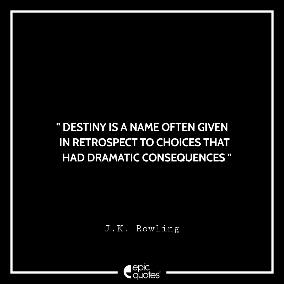 Destiny is a name often given in retrospect to choices that had dramatic consequences. -J.K. Rowling Categories Monday " Destiny is a name often given in retrospect to choices that had dramatic consequences. -J.K. Rowling " Post author By Shubham Post date April 1, 2022