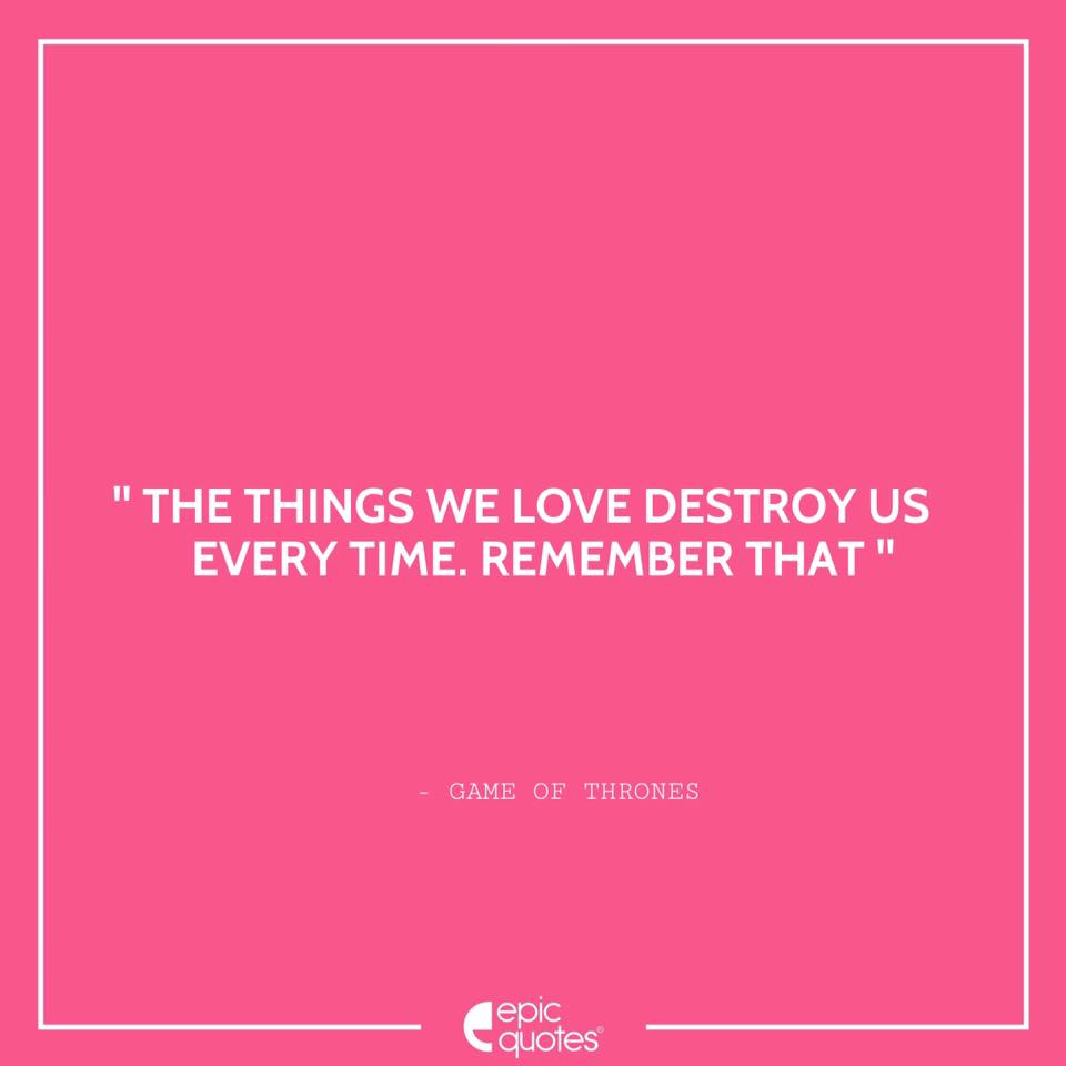 The things we love destroy us every time. Remember that Categories Game Of Thrones Life " The things we love destroy us every time. Remember that. – Game Of Thrones " Post author By Bhavya Gaur Post date February 11, 2020