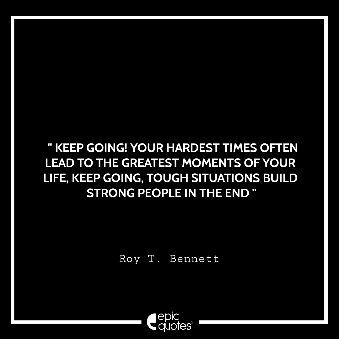 9 Keep going! Your hardest times often lead to the greatest moments of your life. Keep going. Tough situations build strong people in the end