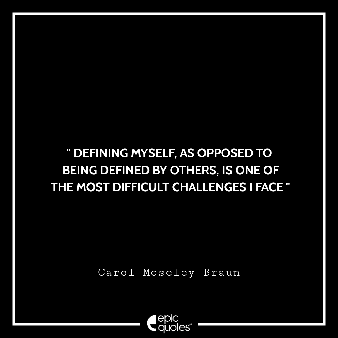 11. Defining myself, as opposed to being defined by others, is one of the most difficult challenges I face. -Carol Moseley Braun