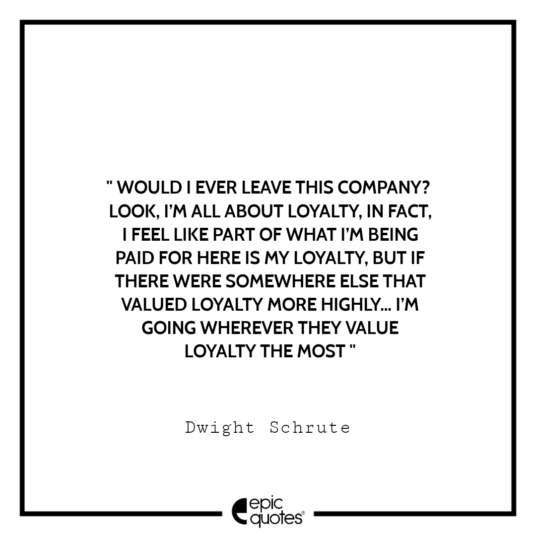 4 Would I ever leave this company? Look, I’m all about loyalty, In fact, I feel like part of what I’m being paid for here is my loyalty, But if there were somewhere else that valued loyalty more highly… I’m going wherever they value loyalty the most. — Dwight Schrute