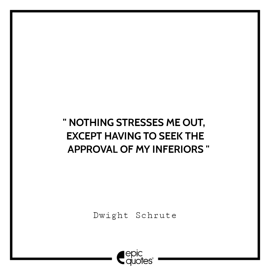 8. Nothing stresses me out. Except having to seek the approval of my inferiors. — Dwight Schrute
