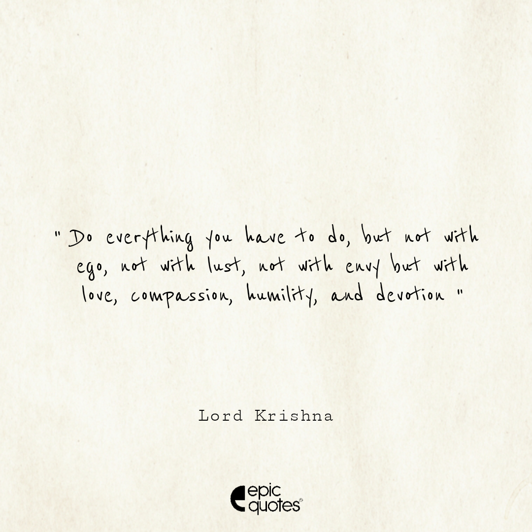 3 Do everything you have to do, but not with ego, not with lust, not with envy but with love, compassion, humility, and devotion