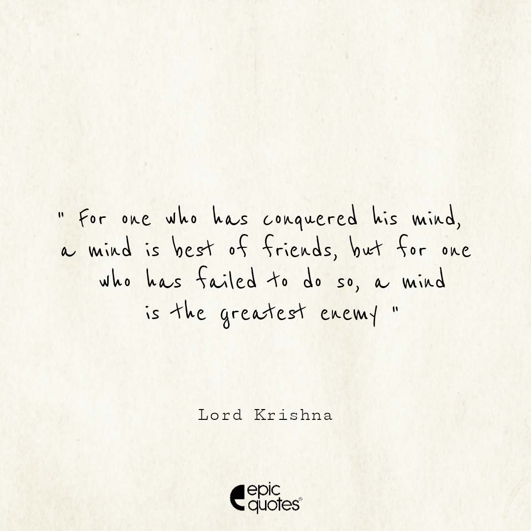 4. For one who has conquered his mind, a mind is best of friends, but for one who has failed to do so, a mind is the greatest enemy