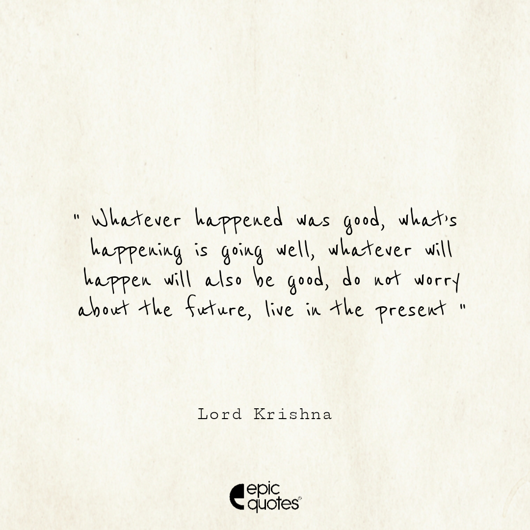 7 Whatever happened was good. What’s happening is going well. Whatever will happen will also be good. Do not worry about the future. Live in the present