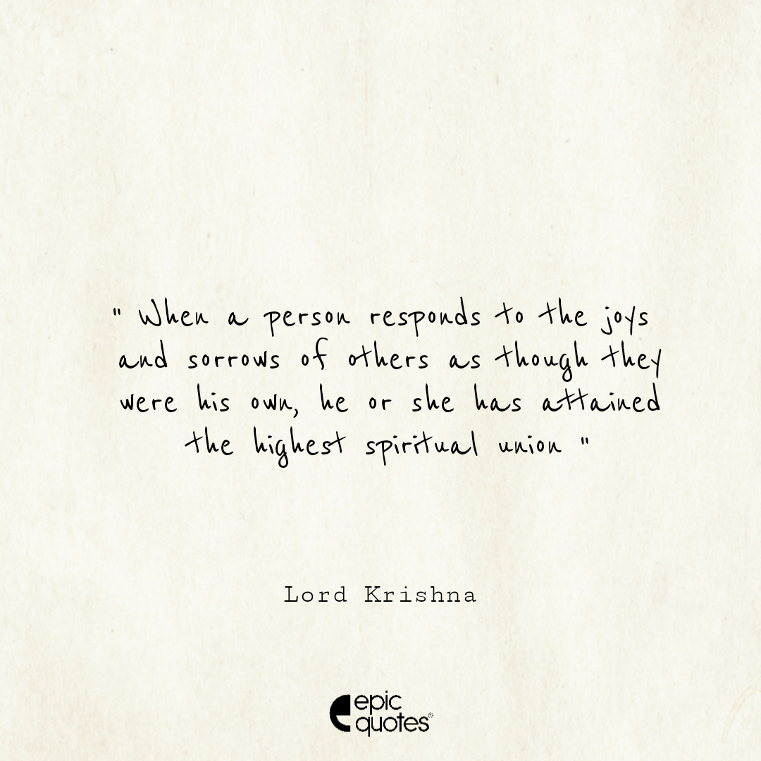 10. When a person responds to the joys and sorrows of others as though they were his own, he or she has attained the highest spiritual union