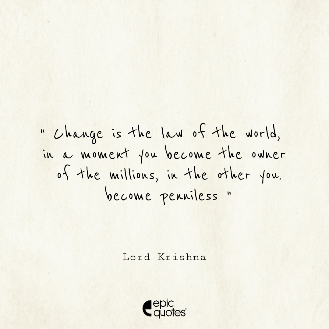 13. Change is the law of the world, in a moment you become the owner of the millions, in the other you become penniless