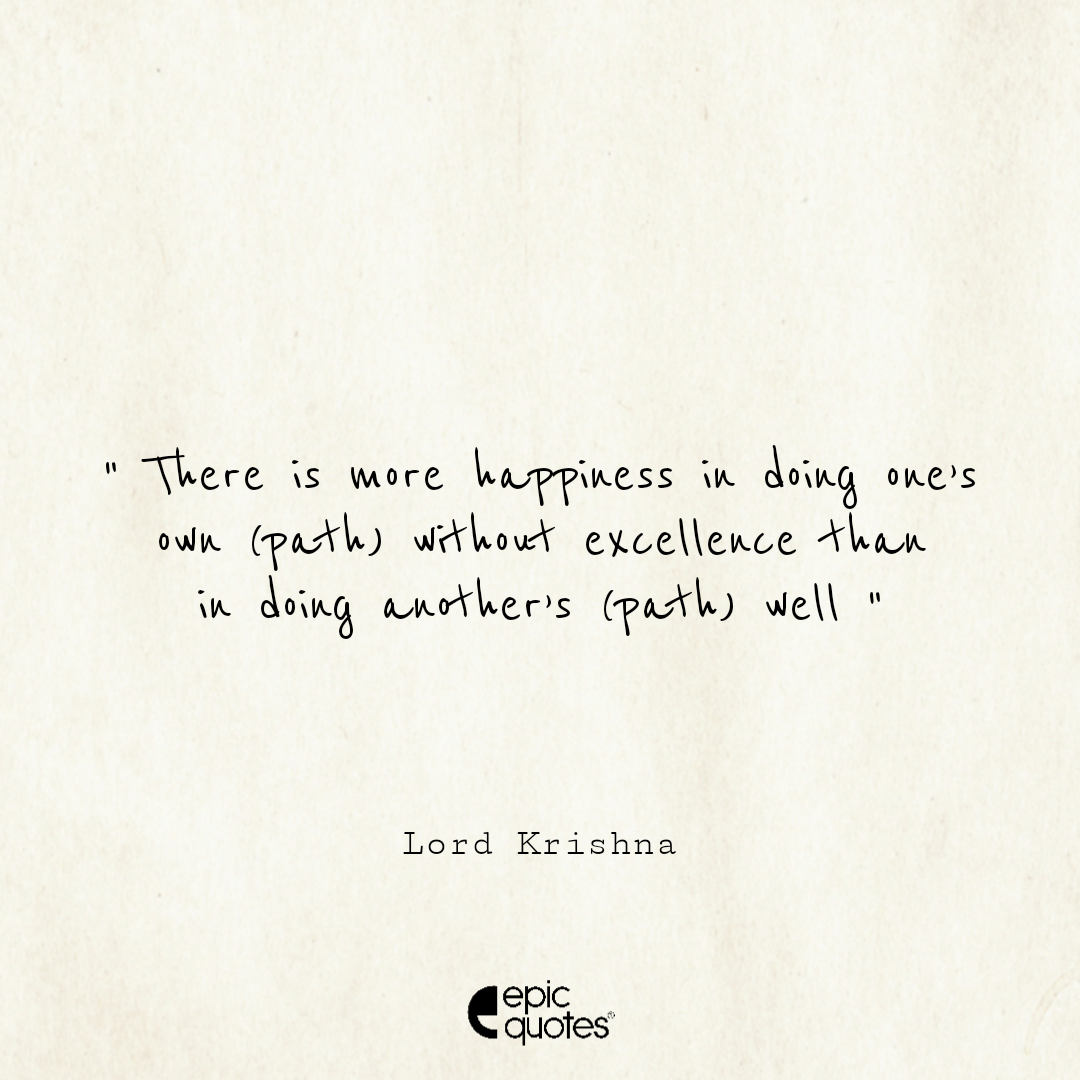 15. There is more happiness in doing one’s own (path) without excellence than in doing another’s (path) well