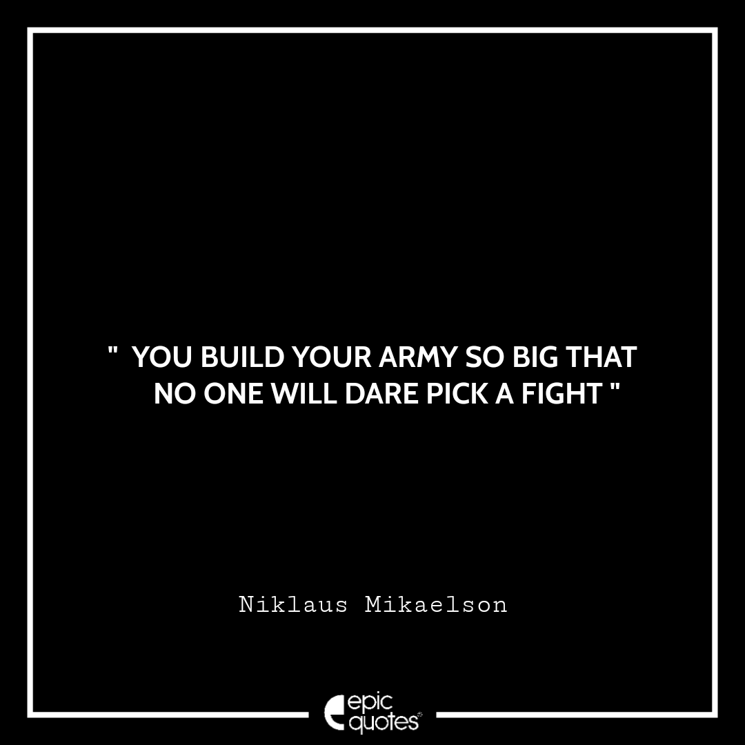 6 You build your army so big that no one will dare pick a fight. — Niklaus Mikaelson