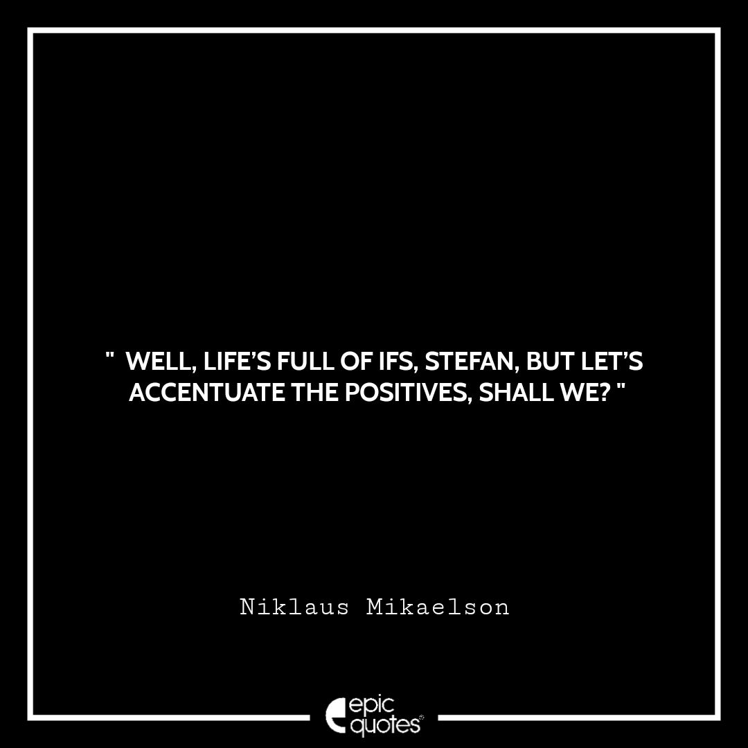 9 Well, life’s full of ifs, Stefan. But let’s accentuate the positives, shall we? — Niklaus Mikaelson