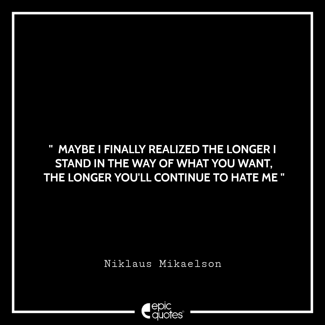 10 Maybe I finally realized the longer I stand in the way of what you want, the longer you’ll continue to hate me. — Niklaus Mikaelson