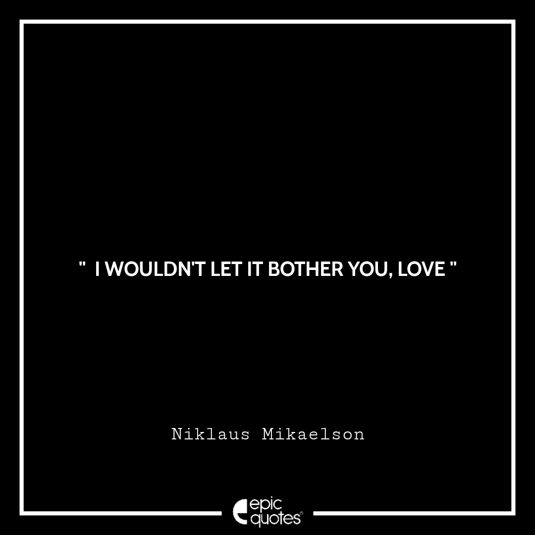 12 I wouldn’t let it bother you, love. — Niklaus Mikaelson