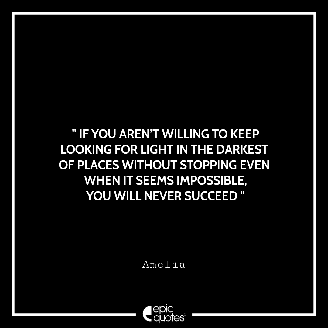 1. If you aren’t willing to keep looking for light in the darkest of places without stopping even when it seems impossible, you will never succeed. – Amelia