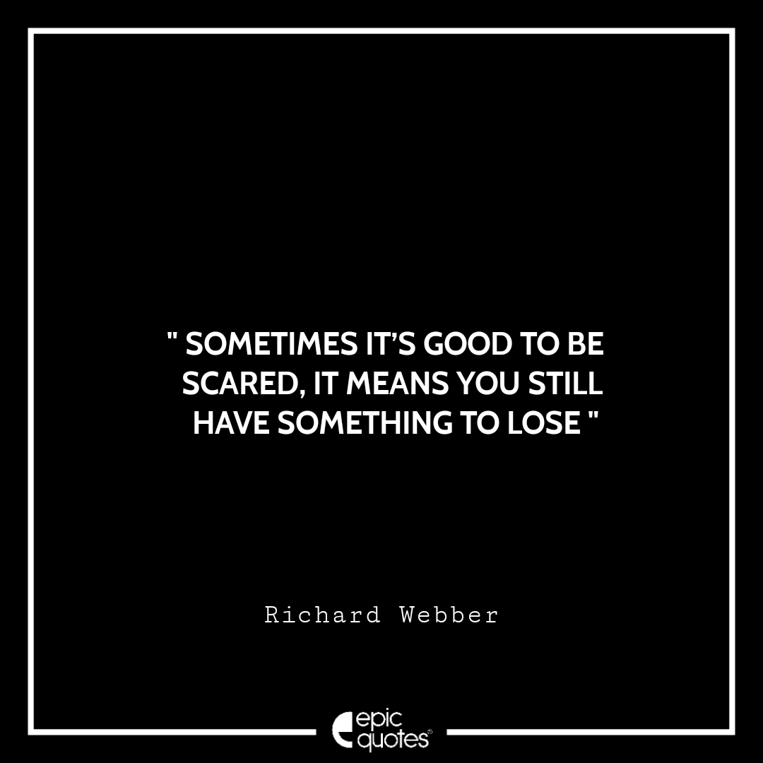 7. Sometimes it’s good to be scared. It means you still have something to lose. —Richard Webber