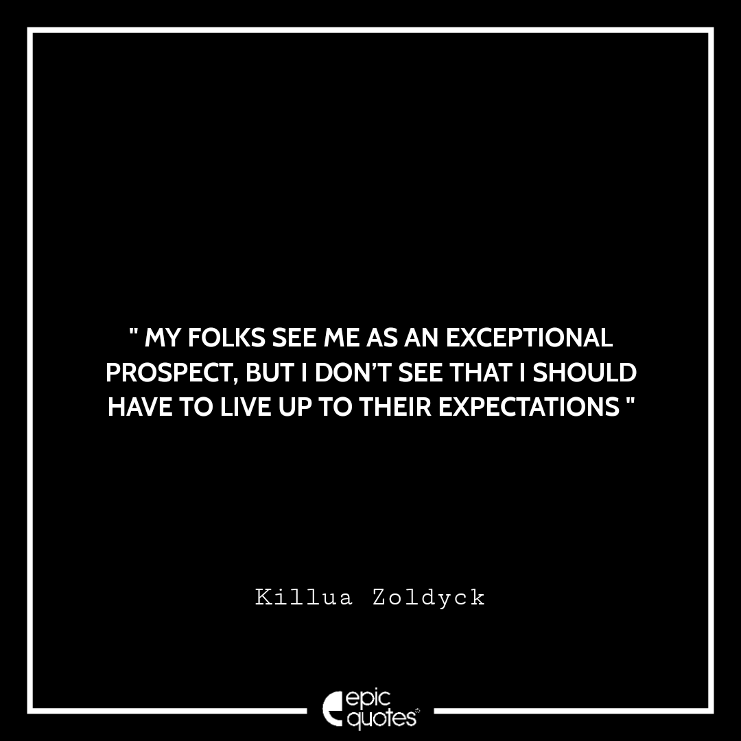 11. My folks see me as an exceptional prospect. But I don’t see that I should have to live up to their expectations. – Killua Zoldyck