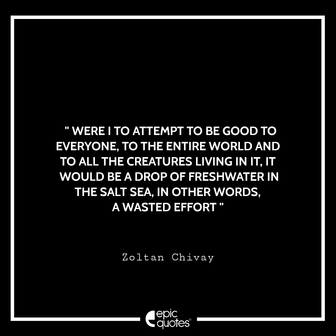 4. Were I to attempt to be good to everyone, to the entire world, and to all the creatures living in it, it would be a drop of fresh water in the salt sea. In other words, a wasted effort