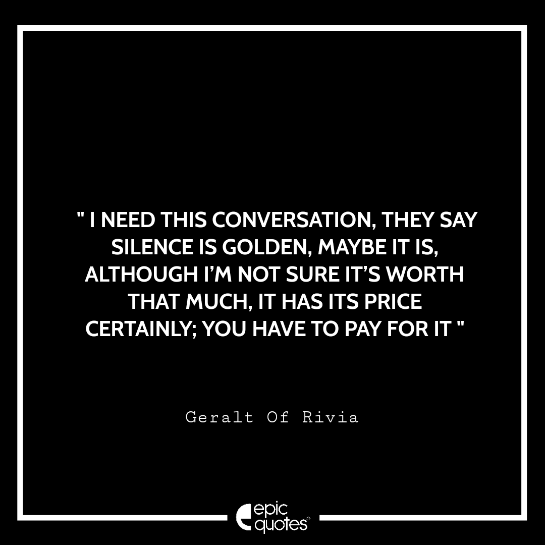 14 I need this conversation. They say silence is golden. Maybe it is, although I’m not sure it’s worth that much. It has its price certainly; you have to pay for it