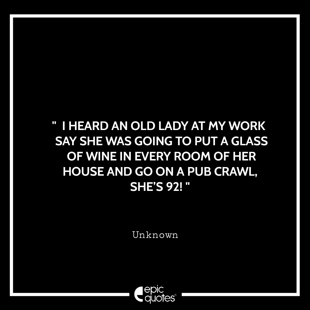 3 I heard an old lady at my work say she was going to put a glass of wine in every room of her house and go on a pub crawl. She’s 92!