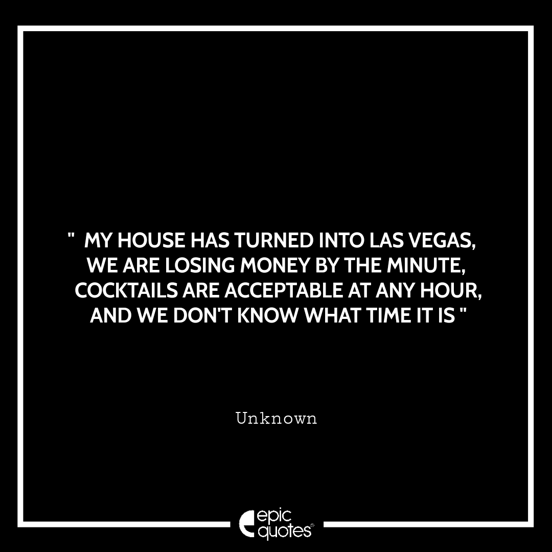 6 My house has turned into Las Vegas. We are losing money by the minute, cocktails are acceptable at any hour, and we don’t know what time it is