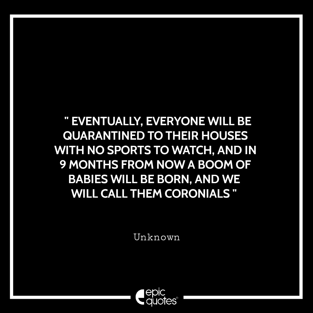 11 Eventually, everyone will be quarantined to their houses with no sports to watch… and in 9 months from now a boom of babies will be born… and we will call them coronials