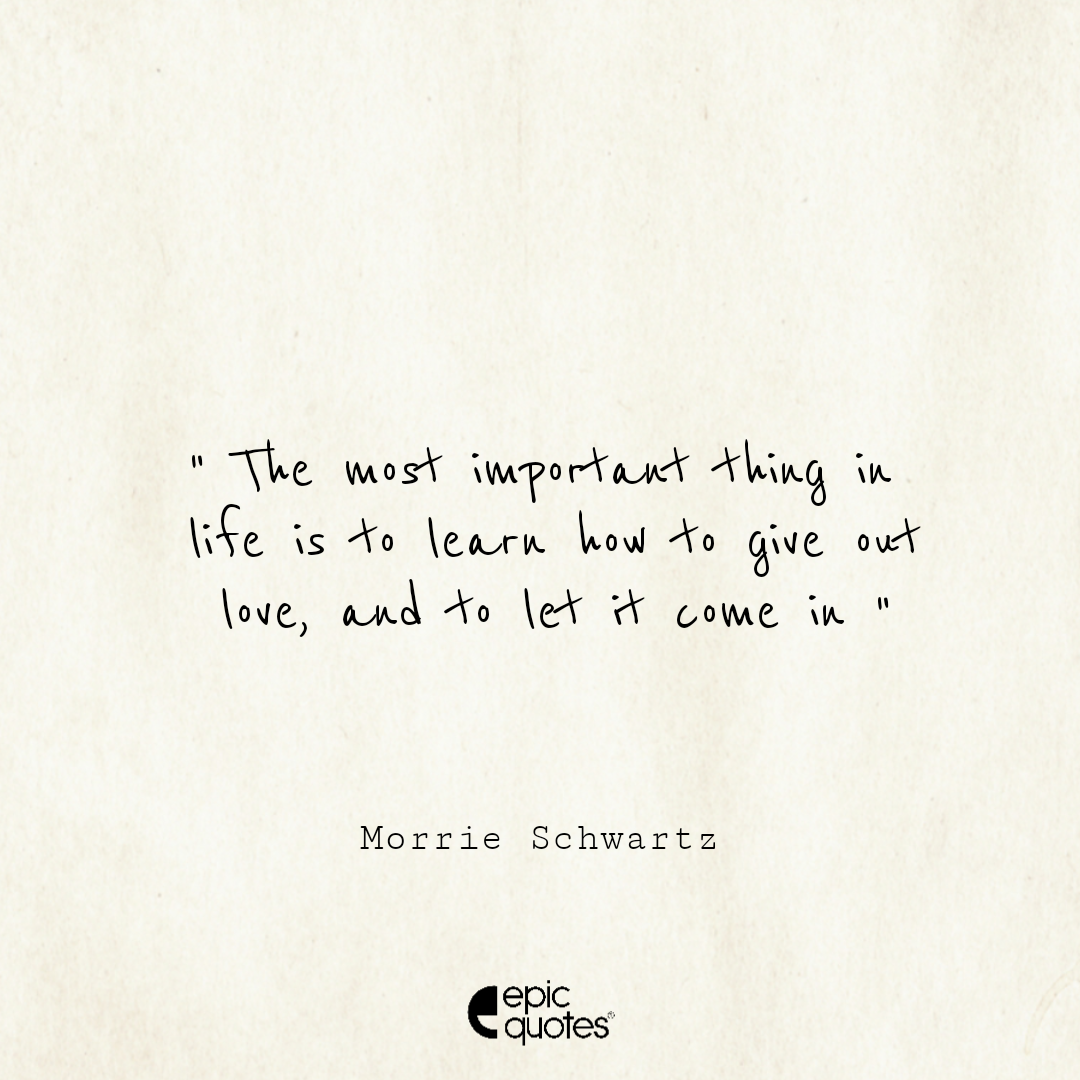 7. The most important thing in life is to learn how to give out love, and to let it come in