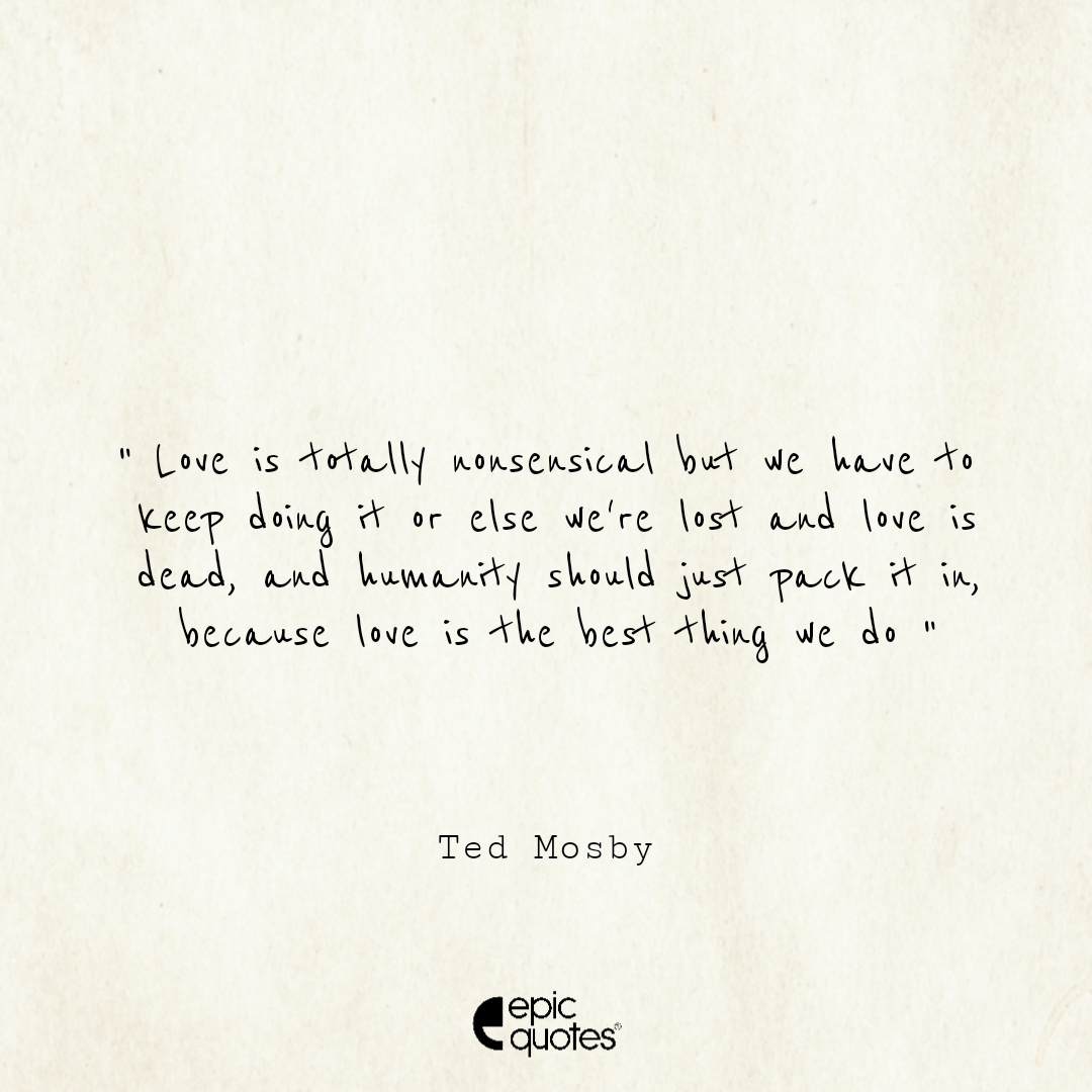 15 Love is totally nonsensical. But we have to keep doing it or else we’re lost and love is dead, and humanity should just pack it in. Because love is the best thing we do