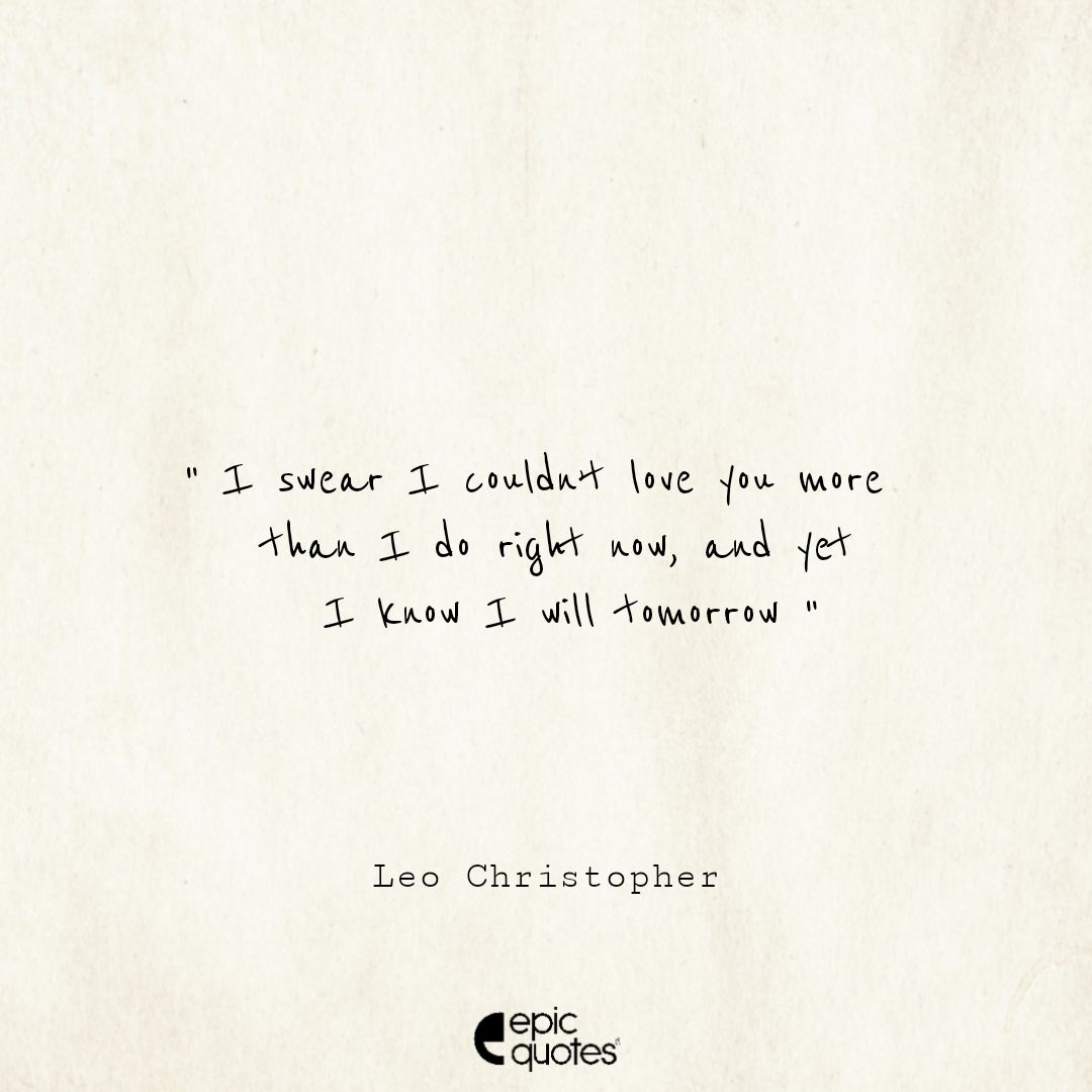 17 I swear I couldn’t love you more than I do right now, and yet I know I will tomorrow. –Leo Christopher