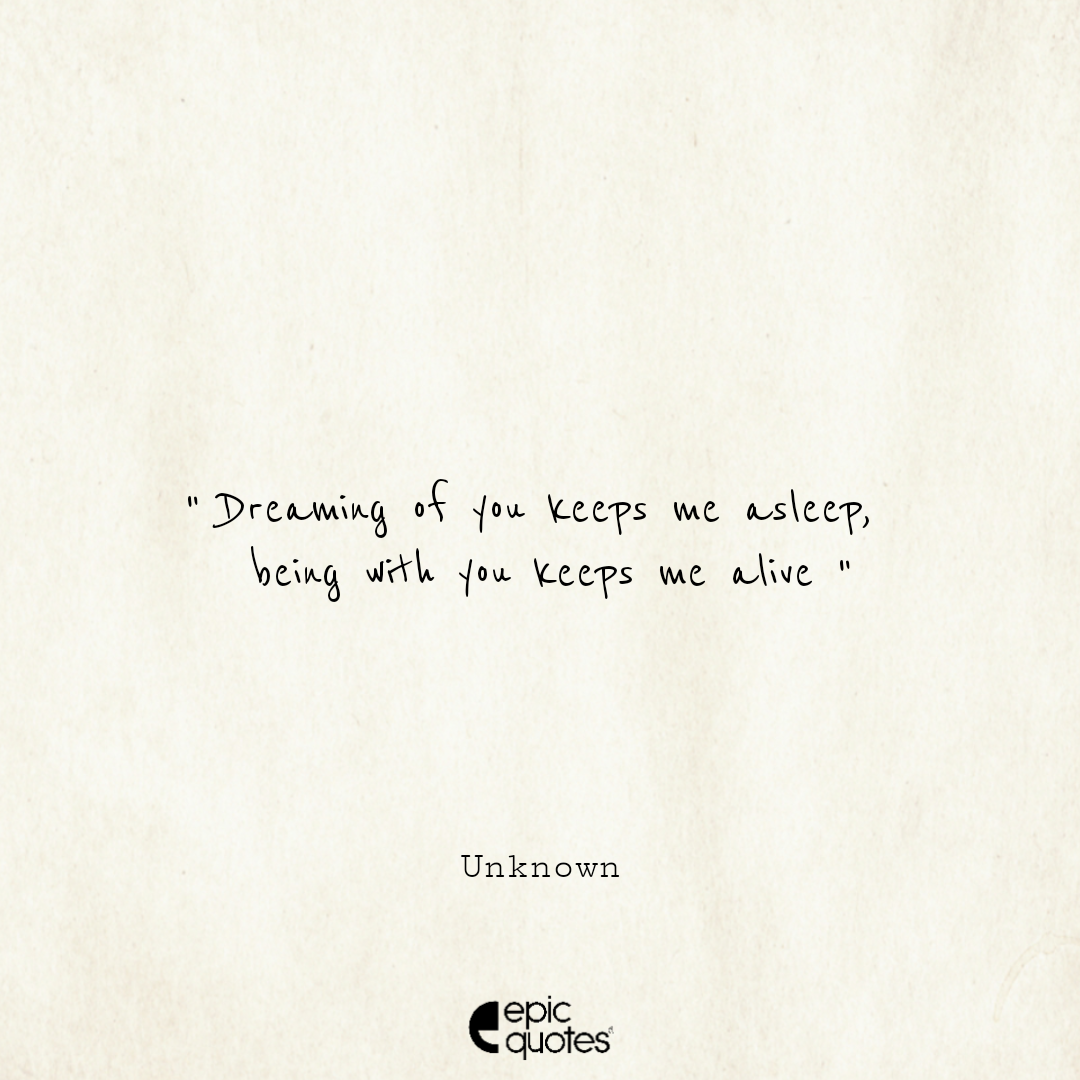 18 Dreaming of you keeps me asleep, being with you keeps me alive. –Unknown