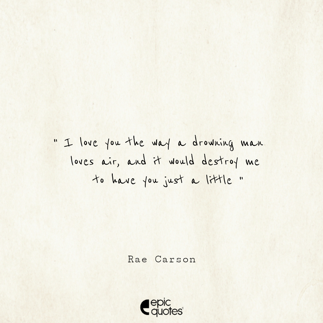 23. I love you the way a drowning man loves air, And it would destroy me to have you just a little. – Rae Carson