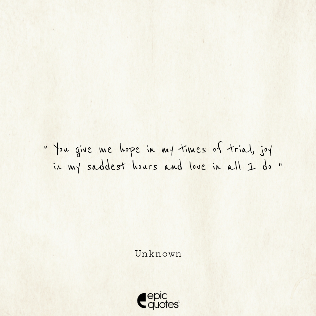 24. You give me hope in my times of trial, joy in my saddest hours and love in all I do. -Unknown