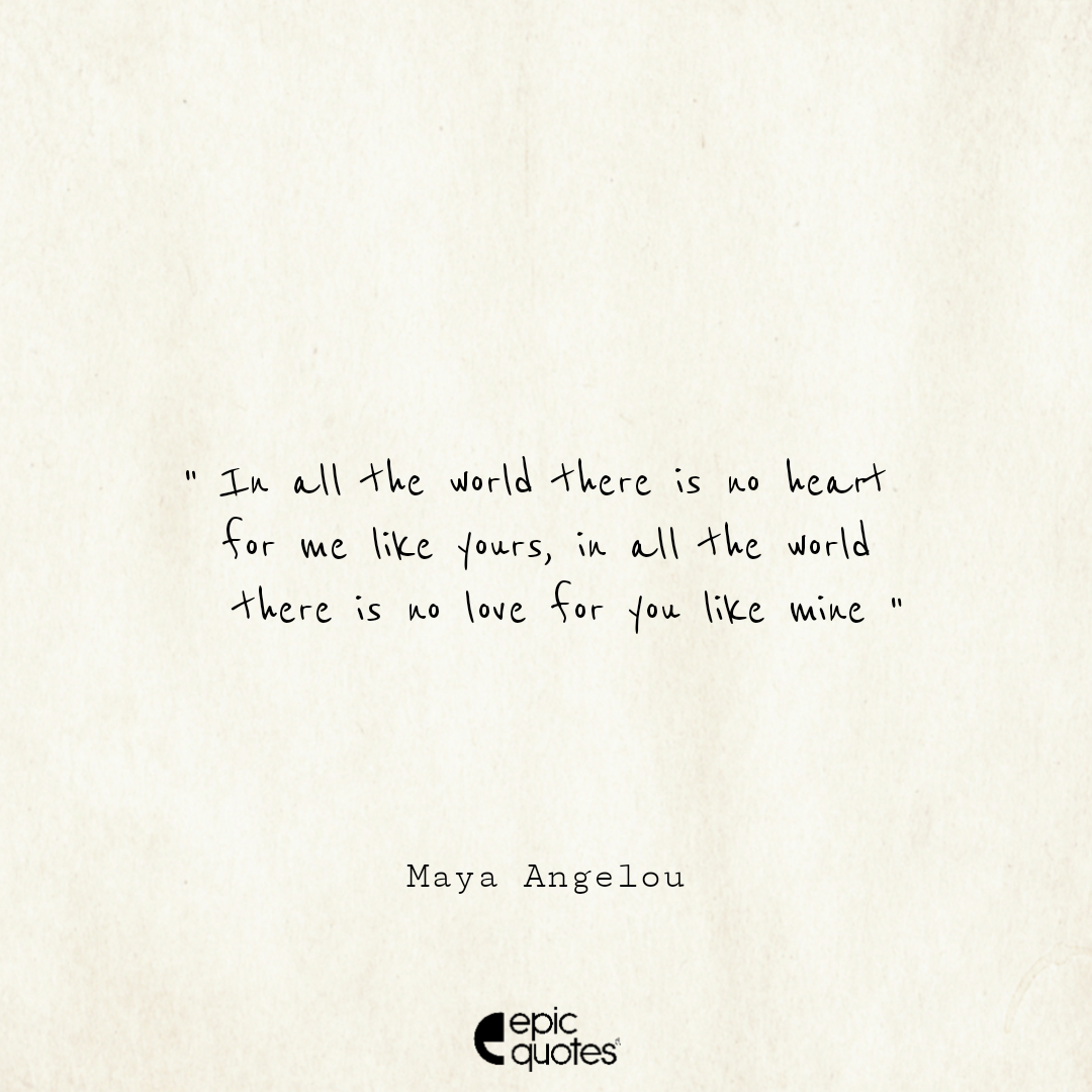 28. In all the world there is no heart for me like yours, In all the world there is no love for you like mine. -Maya Angelou