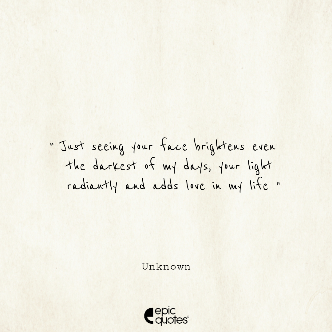 29 Just seeing your face brightens even the darkest of my days, Your light radiantly and adds love in my life. -Unknown
