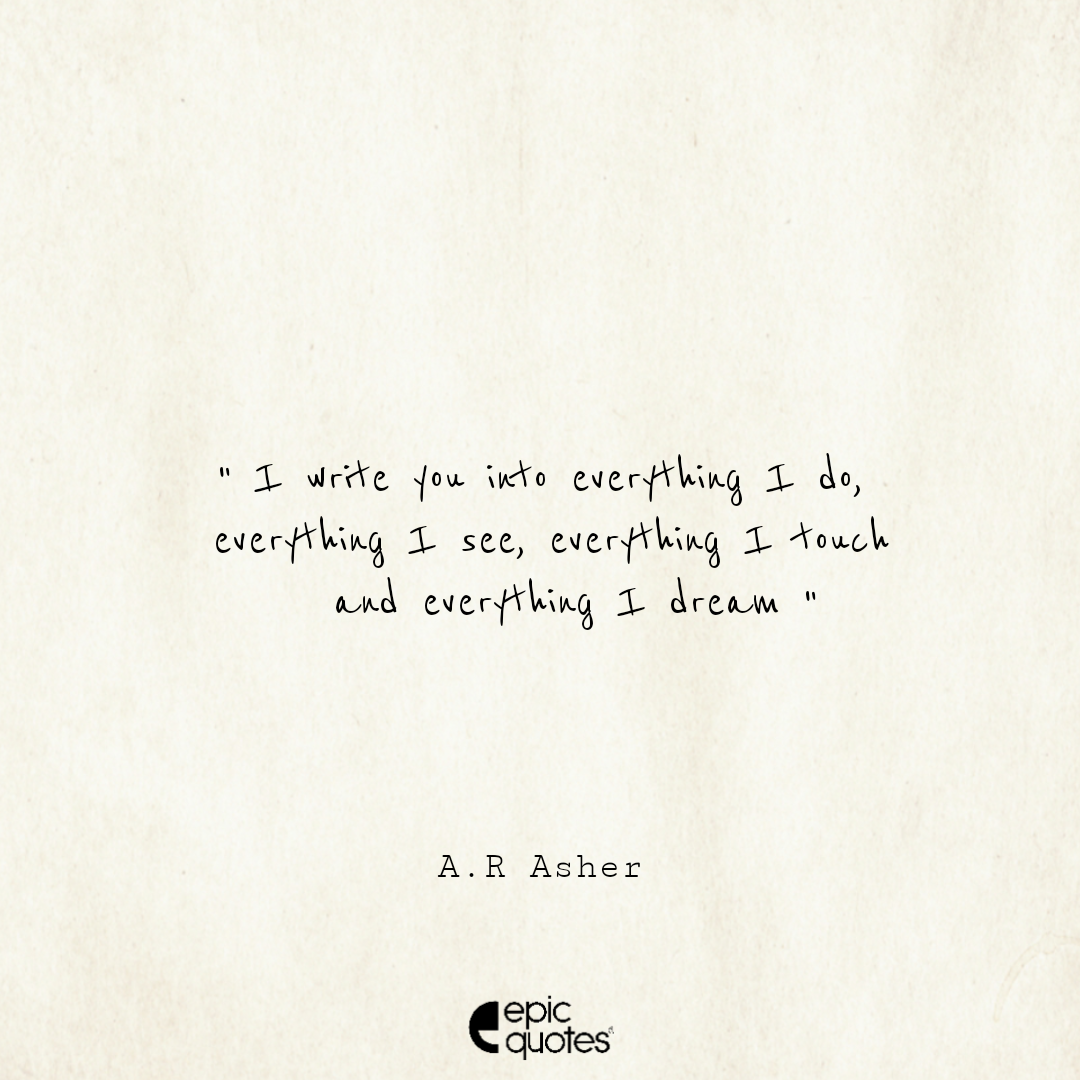 30 I write you into everything I do, everything I see, everything I touch and everything I dream. -A.R Asher
