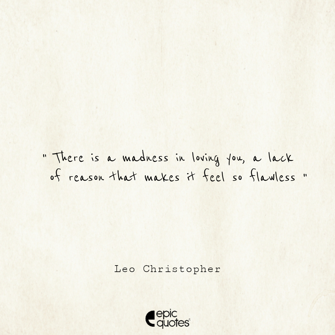 31 There is a madness in loving you, a lack of reason that makes it feel so flawless. -Leo Christopher