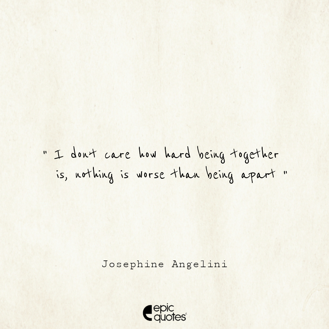 32 I don’t care how hard being together is, nothing is worse than being apart. -Josephine Angelini
