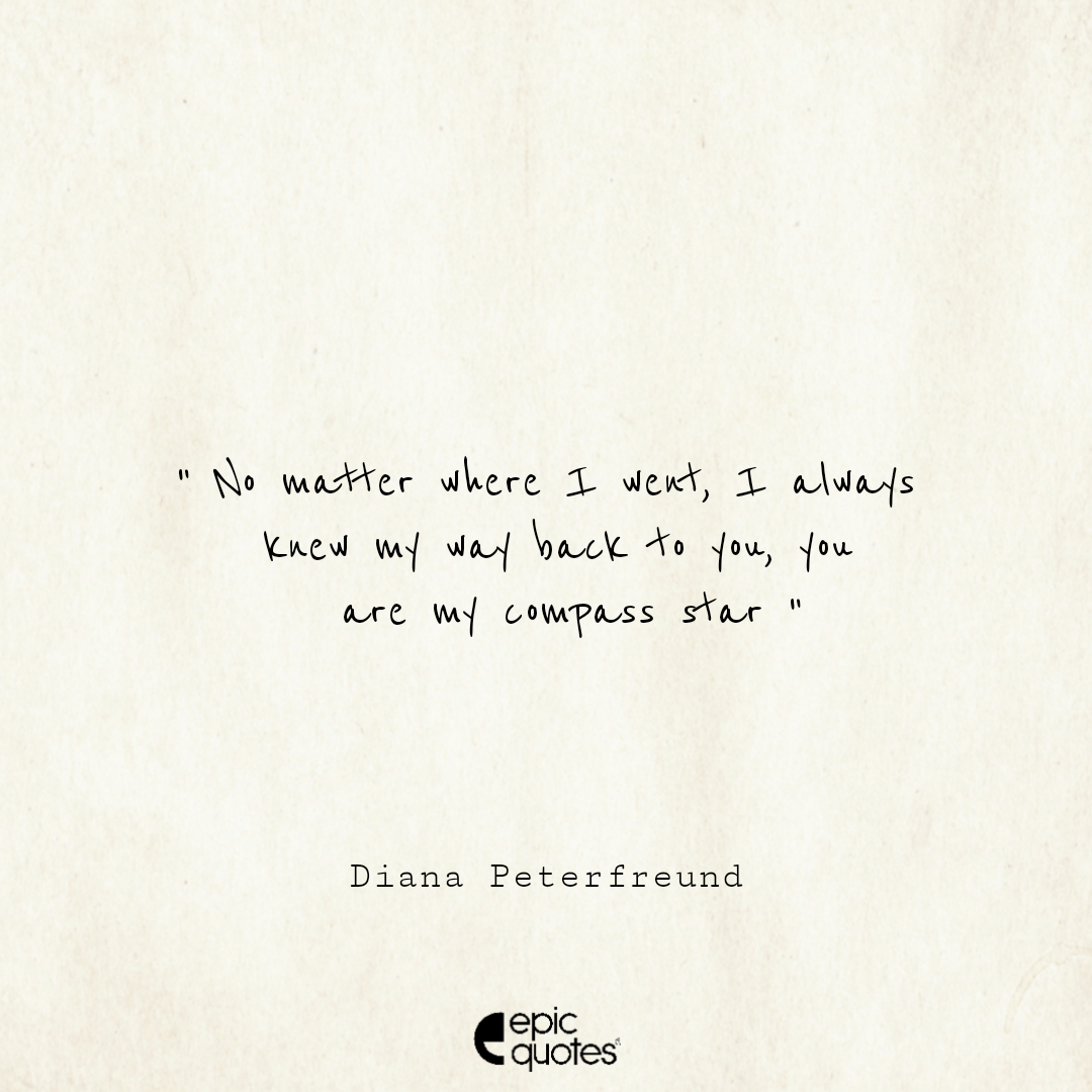33. No matter where I went, I always knew my way back to you, You are my compass star. -Diana Peterfreund