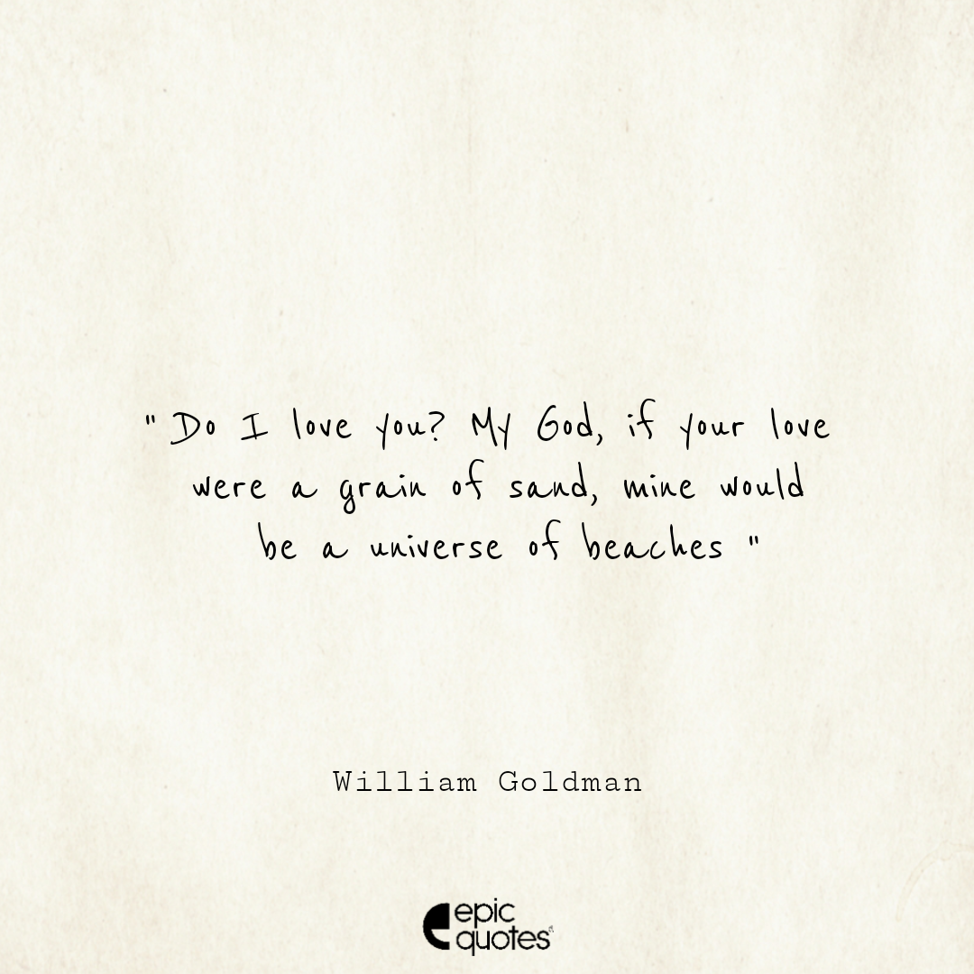 34 Do I love you? My God, if your love were a grain of sand, mine would be a universe of beaches. –William Goldman