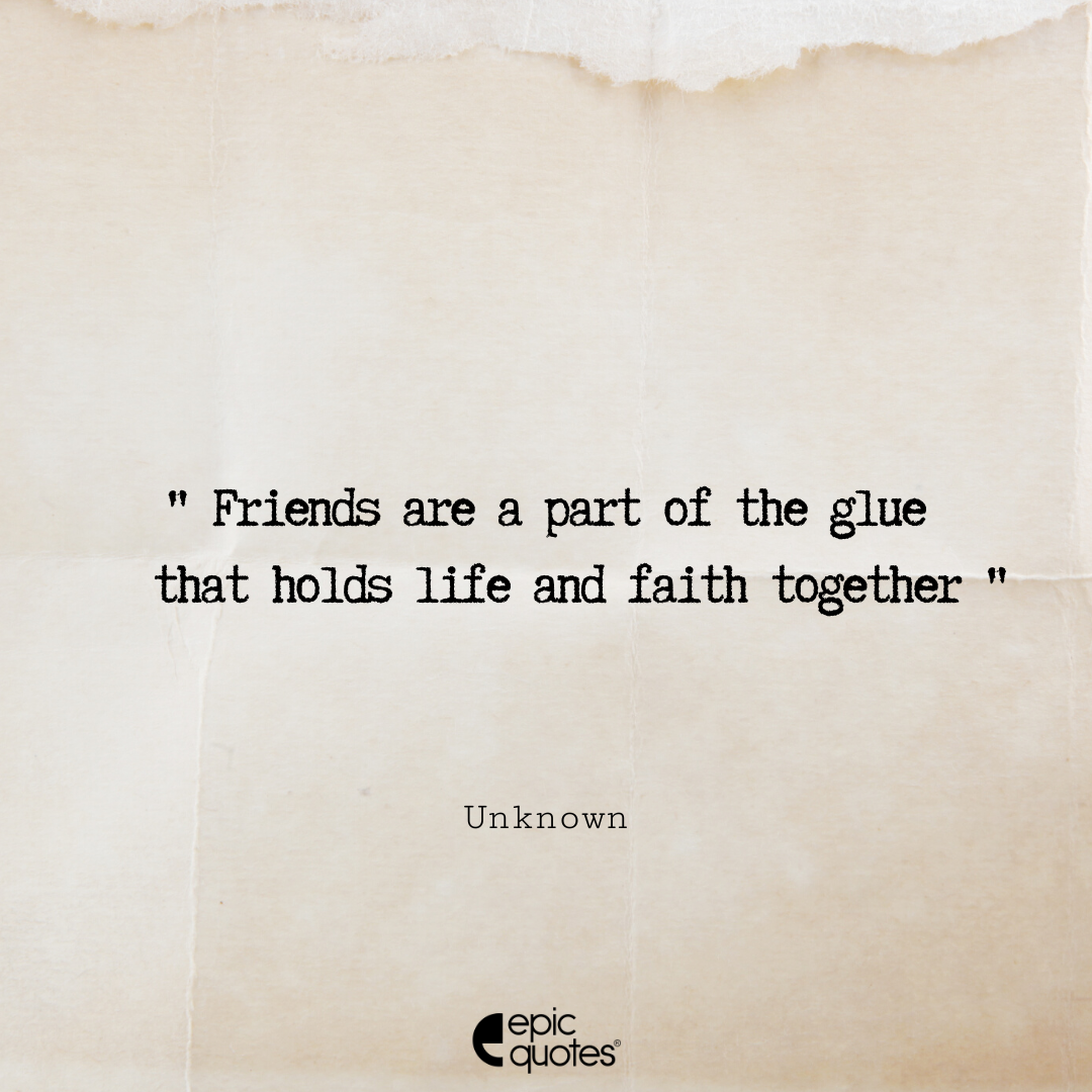 Categories Epic Quotes MainFriends are a part of the glue that holds life and faith together Post author By Tanya Suyal Post date May 10, 2022 Friends are a part of the glue that holds life and faith together” Friends are a part of the glue that holds life and faith together “ Lets be social: 1.4M+ Fans 450K+ Followers Tags Epic Quotes, Funny Quotes, Inspiring, Life, Life Quotes, quotes ← 14 Quotes That Will Positively Impact the Woman in you → Friends who stop you from making wrong decisions are a gift from God. Related articles Sorry I’m Late, I was Hoping the Plan Would be Canceled Don’t cry over what has happened; great things are ahead Kindle, paperbacks, or do you not read at all? Is it just me or does everyone have a second dinner? What’s your first thought every morning after waking up? I miss my lost friendships more than anything else
