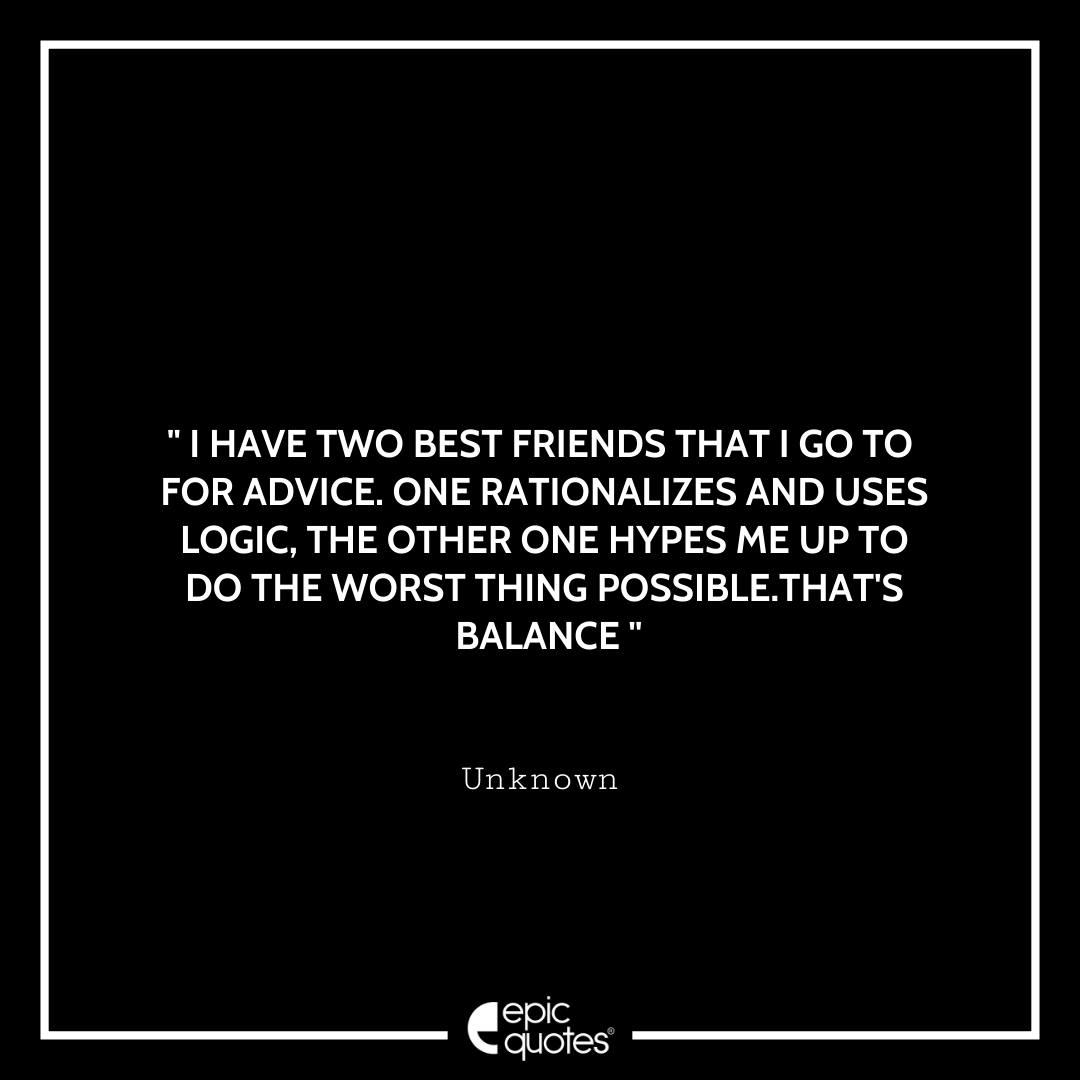 I have two best friends that I go to for advice. One rationalizes and uses logic, the other one hypes me up to do the worst thing possible. That’s balance