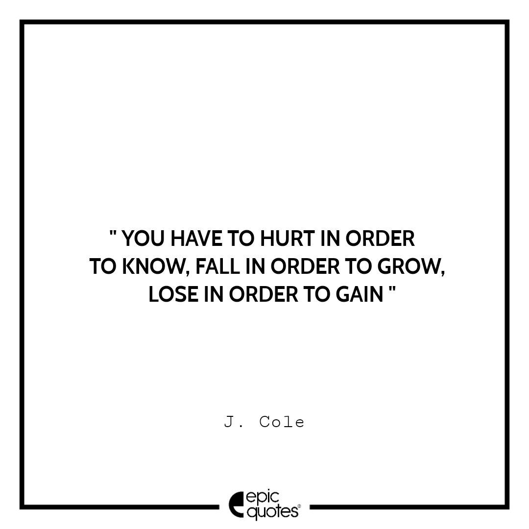 7 . You have to hurt in order to know, fall in order to grow, lose in order to gain. -J. Cole