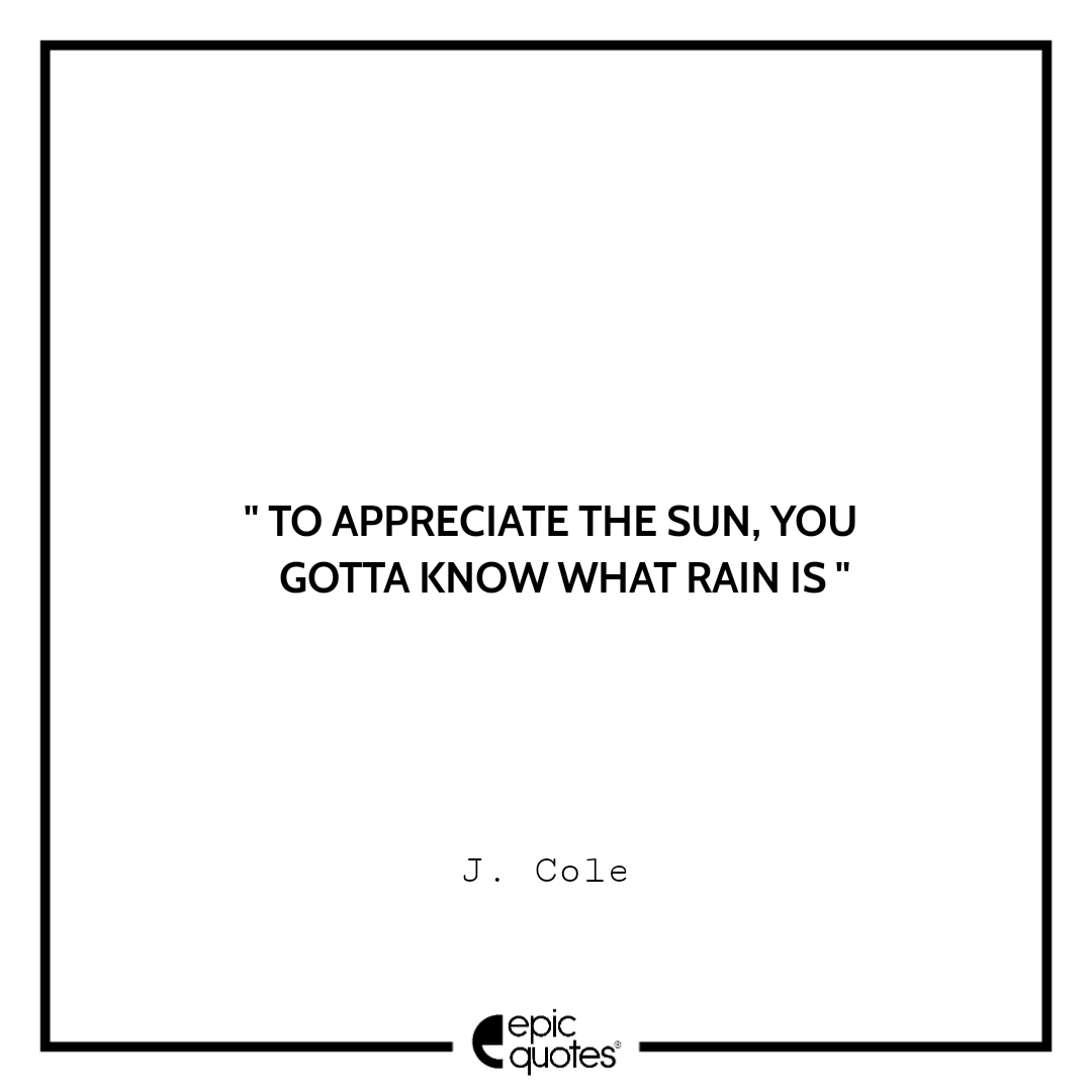 To appreciate the sun, you gotta know what rain is. -J. Cole
