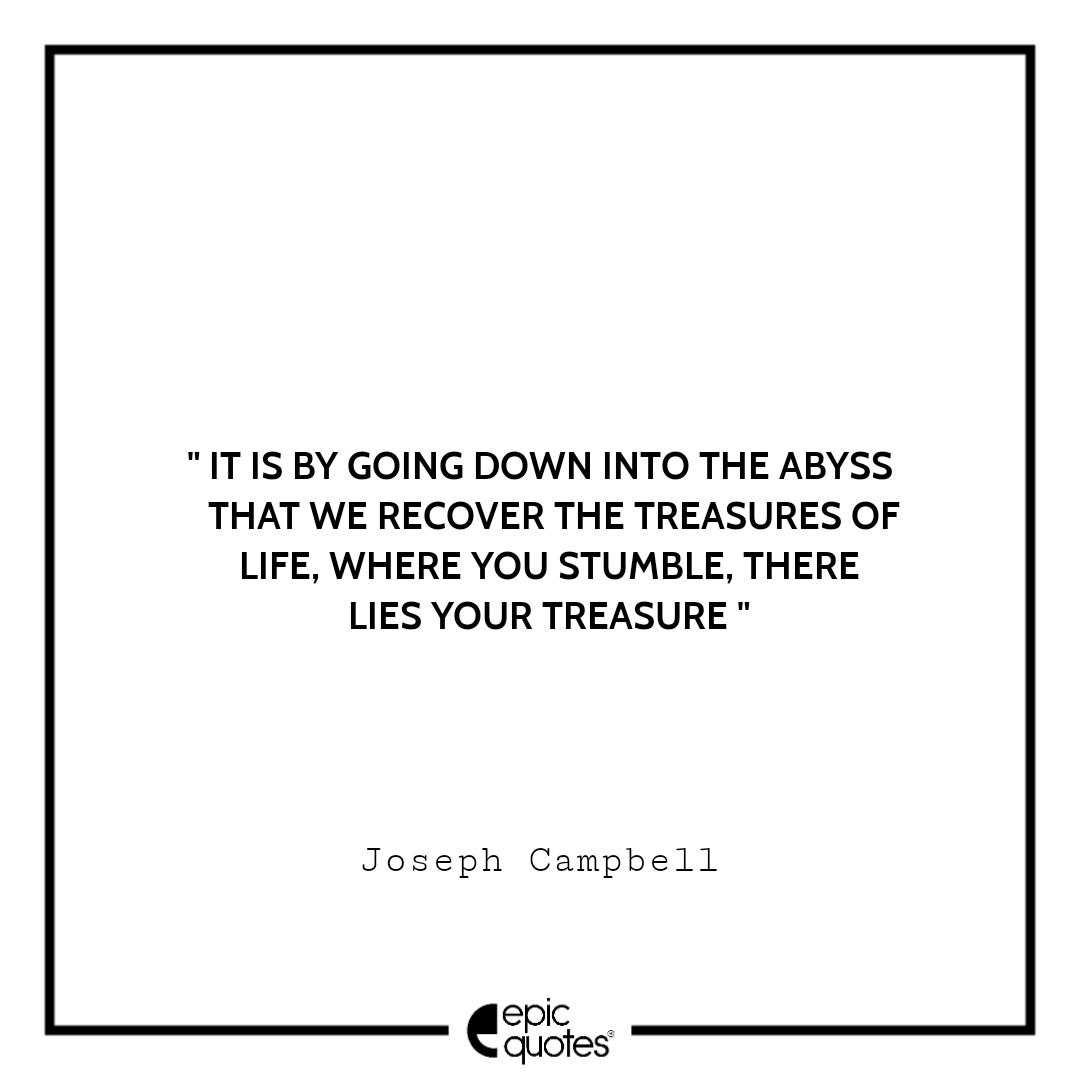 ” It is by going down into the abyss that we recover the treasures of life, where you stumble, there lies your treasure. -Joseph Campbell “