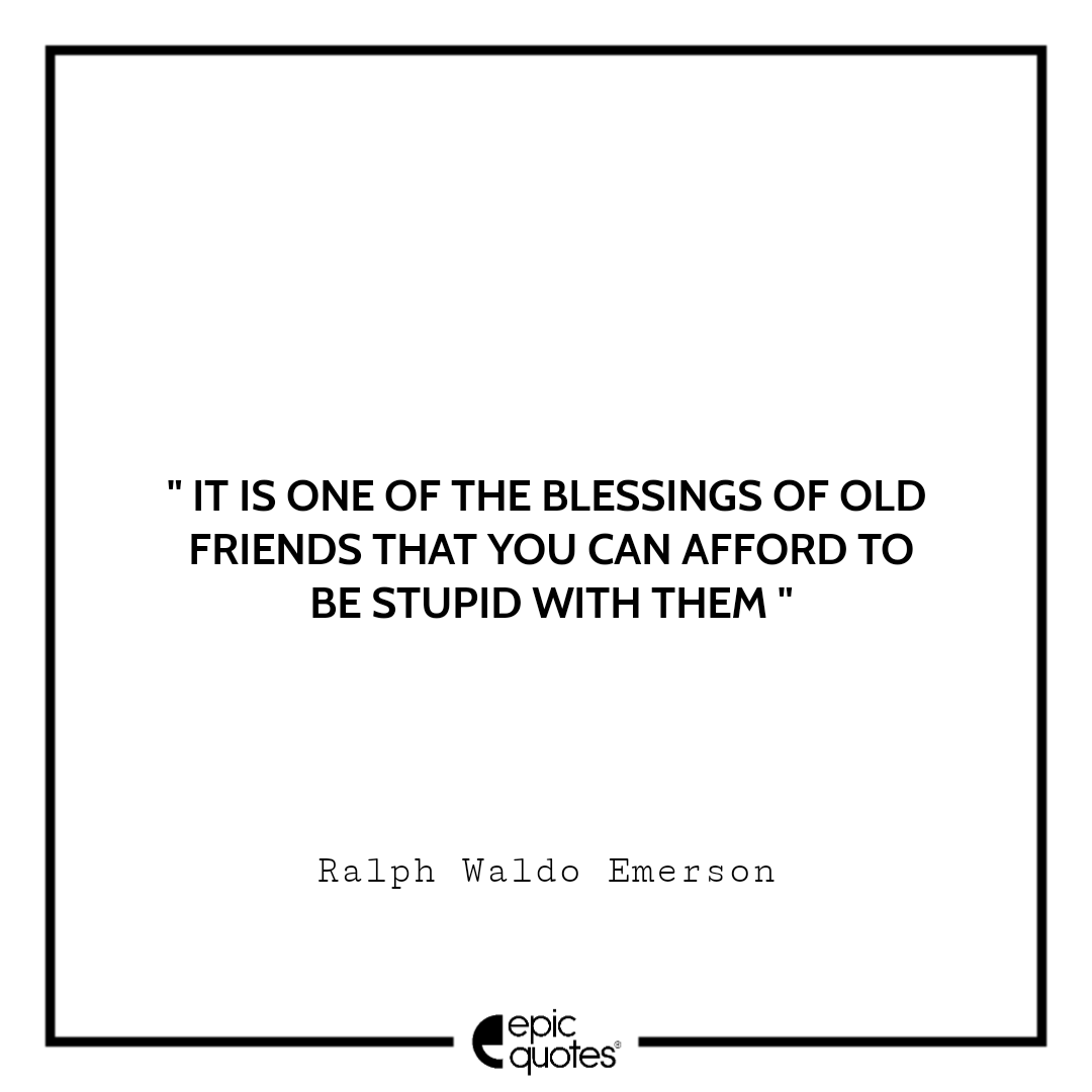 Categories FriendsIt is one of the blessings of old friends that you can afford to be stupid with them Post author By Chirag Malik Post date June 23, 2020 It is one of the blessings of old friends that you can afford to be stupid with them” It is one of the blessings of old friends that you can afford to be stupid with them “ Lets be social: 1.4M+ Fans 450K+ Followers Chirag MalikMeet Mr Sarcasm, always giving advice – taking none, a wannabe engineer and a bonafide curator who’s full of quirks! Ps : No one really listens to him though ;)Connect with me:[email protected] View Posts → ← The best things in life aren’t things…they’re your friends → In forming new friendships, forget not old friends Related articles I’m innocent but my best friend Taught me about dirty stuff True friends are the ones who lift you up, when no one else has noticed that you’re fallen I’ve never seen two calm best friends, one always has anger issues It’s the friends you can call up at 3 a.m. that matter. -Marlene Dietrich If you have friends who are as weird as you, then you have everything. -Unknown Remember well and bear in mind, a constant friend is hard to find. -Laura Ingalls Wilder