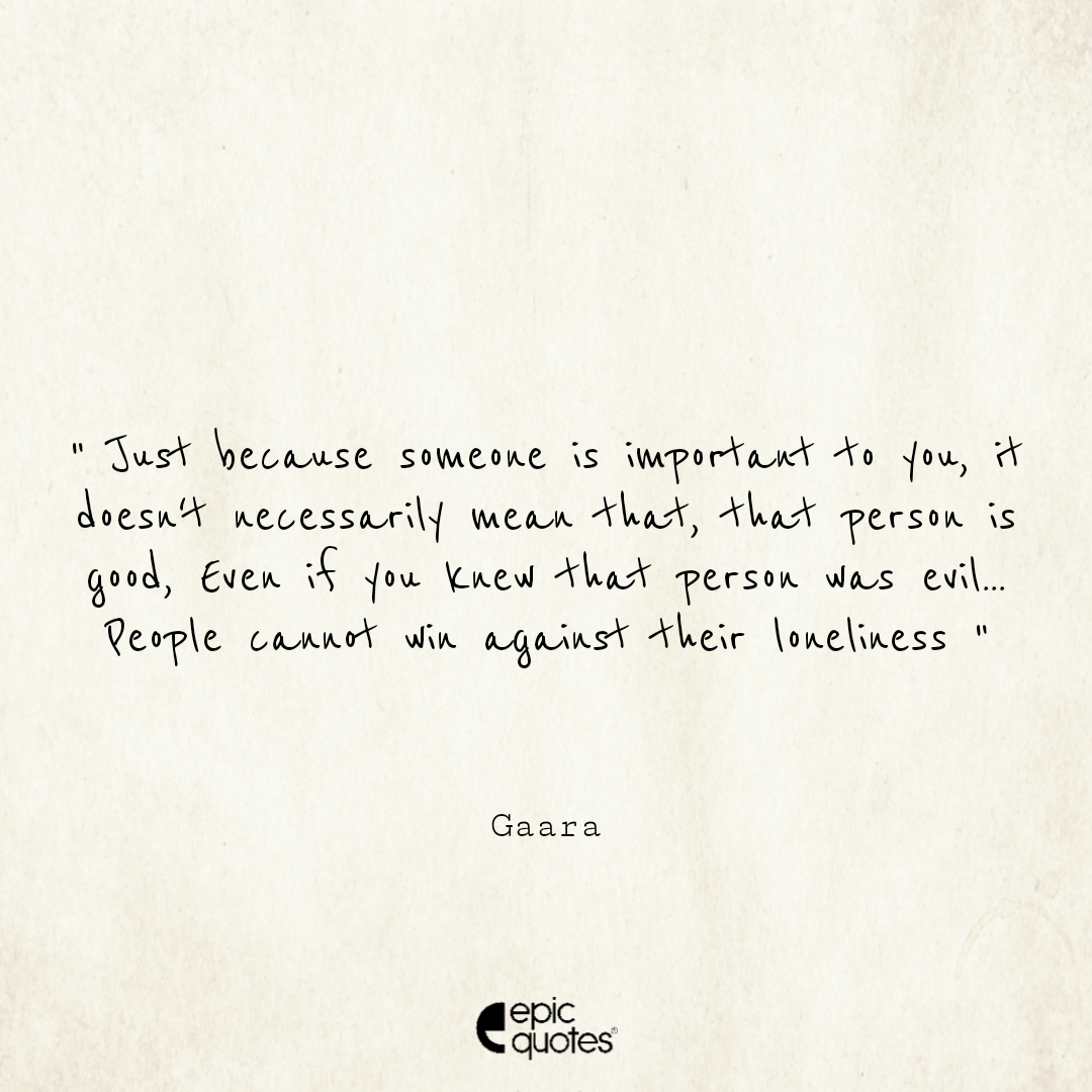Just because someone is important to you, it doesn’t necessarily mean that, that person is good. Even if you knew that person was evil… People cannot win against their loneliness.